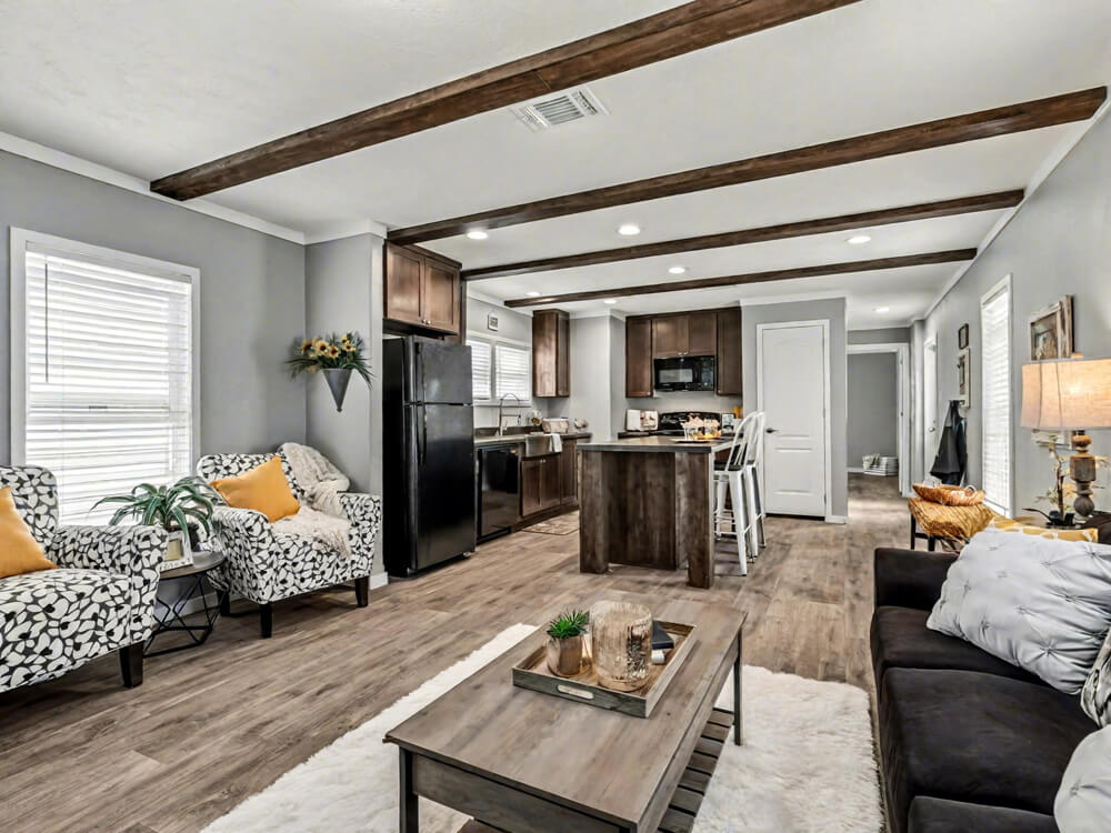 Introducing The Declaration, the newest addition to the New Vision Single-section home lineup. At 16′ x 76′ with 1,140 sq. ft. of living space, this home offers a wide-open floor plan, providing both functionality and style in a single-section design. Whether you’re a first-time homeowner or looking to downsize, The Declaration offers a perfect balance of space, comfort, and convenience.
