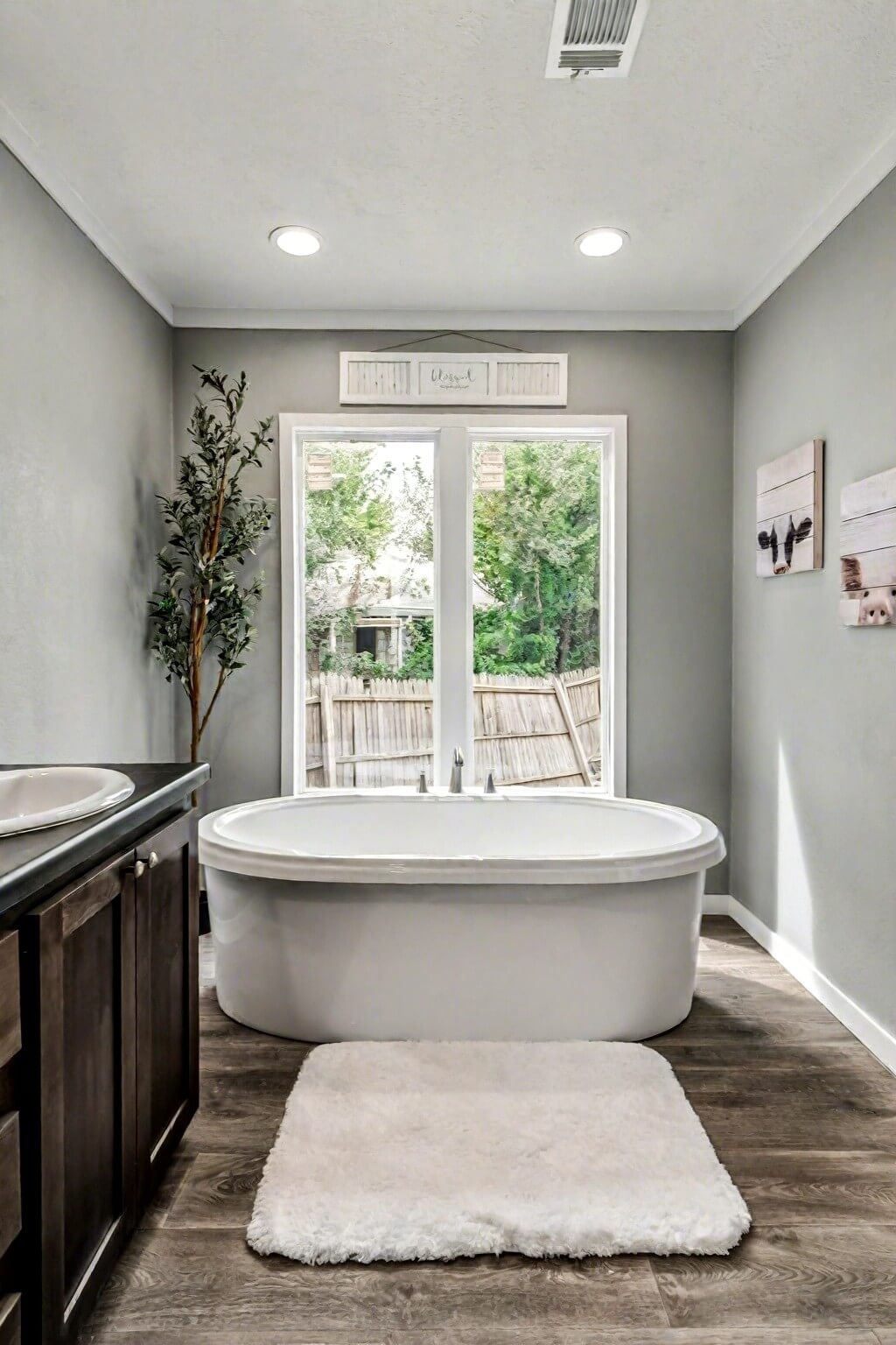 - Spacious Master Suite – The master bedroom is generously sized and includes a large walk-in closet. The adjoining master bath features a luxurious soaker tub, a separate walk-in shower, and a dual vanity setup, offering a spa-like retreat in your own home.